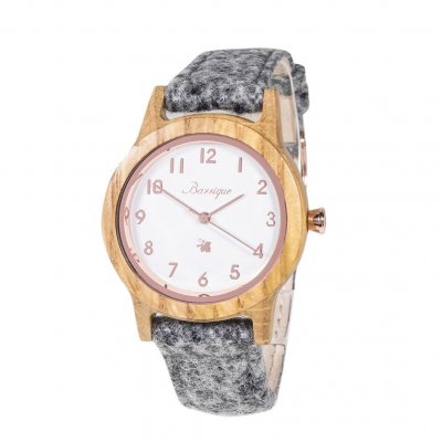 Kombinace dubového dřeva a lodě nebyla nikdy dokonalejší. Barrique Alpin dřevěné hodinky mají sněhobílý ciferník s růžovými arabskými číslicemi, který je absolutně elagantním a vyjadřuje lehkost růžového vína. Šedý lodenovou náramek harmonicky doplňuje náramkové hodinky vyrobené z barikových vinného sudu.