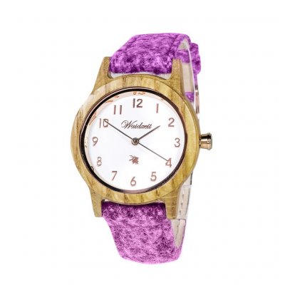 Jedinečný smyslný dámský model dřevěných hodinek Waidzeit prezentuje všechny módní trendy. Nadčasovost, unikátnost, jedinečnost ... Tyto dřevěné hodinky jsou spojením vinařství a hor. Jsou vyrobeny z dubového dřeva z vinných sudů recyklací dřeva. Proto jsou velmi ekologické. Náramek je vyroben z rakouského lodi, velmi jemného materiálu podobnému ovčí plsti. Hodinky jsou velmi pohodlné a lehounké, patří na každou něžnou ženskou ruku.