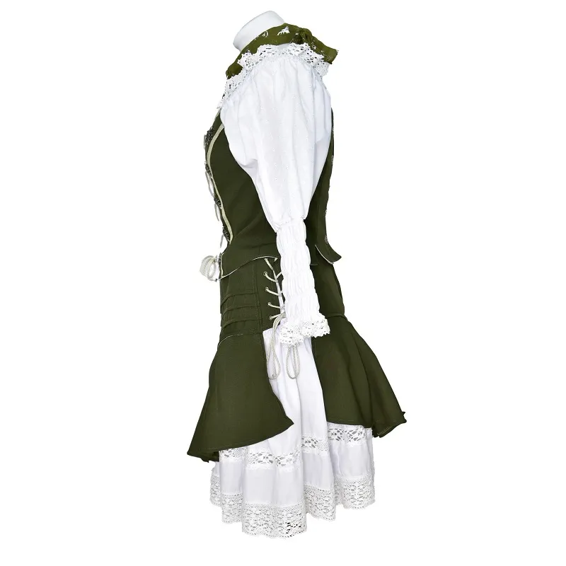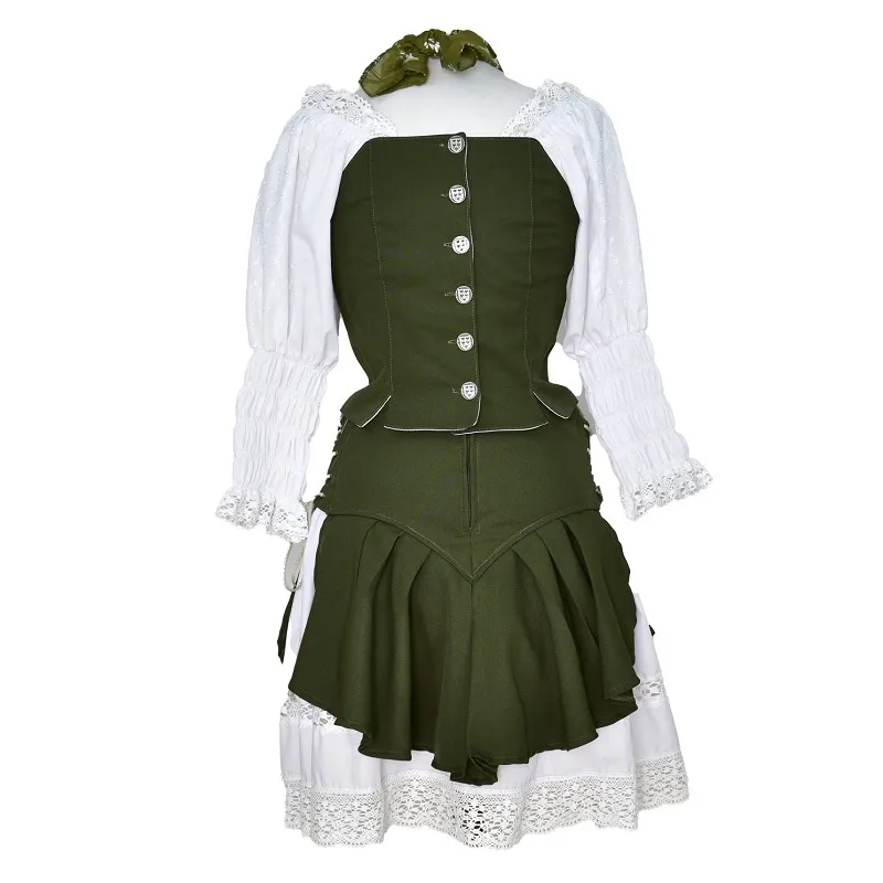 Sukně má zapínání na zip na zádech a také boční nastavitelné ozdobné šňůrky. Po první úpravě boků se používá pouze zadní zip.Vyrobeno z vysoce kvalitní bavlny.Praní: 30 stupňů Žehlení: nejnižší stupeň