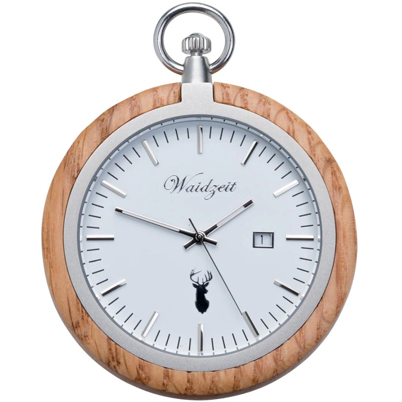 Štýlové vreckové hodinky edície Alpin sú vyhotovené poctivou ručnou prácou zo svetlého dubového dreva. Odnímateľný snehobiely ciferník so striebornými ručičkami je zavesený na retiazke z chirurgickej ocele. Vreckové drevené hodinky sa hodia na každodenné nosenie a patria do vrecka každého správneho muža.