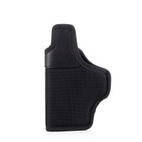 Unikátní řešení nastavitelné otáčející se spony na opasek dává tomuto pouzdru univerzálnost pro více stylů nošení. Pouzdro je vyrobeno z exkluzivního nylonu v kombinaci s černou kůží. Hlavní tělo je vyrobeno z odolného nylonu držícího tvar, přičemž vrchní část pouzdra je zesílena černou kůží. Tento design zajišťuje, že pouzdro zůstane otevřené a umožňuje snazší a rychlé zapouzdření. Nemluvě o hladkém tasení. Pouzdro má také integrovanou plastovou, vodící lištu na mířidla a sweat guard, který odděluje zbraň od těla.