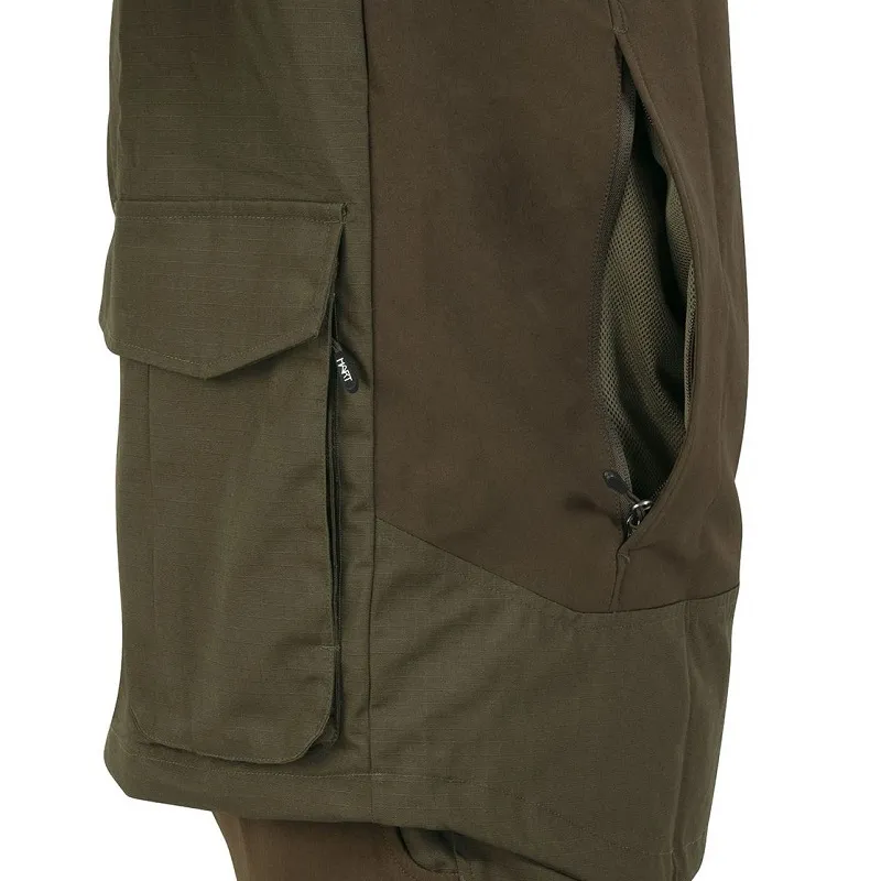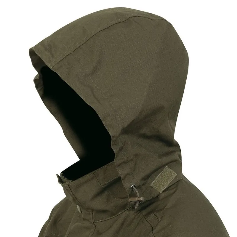 Odolná a vodoodpudivá rip-stopová konstrukce tkaniny z bavlny. Kusy strečové látky pro větší pohodlí. Náprsní kapsa na radio-GPS se zipem (s otvorem a vodící smyčkou na anténu). Vnitřní kapsa na hrudi na zip. 2 velkokapacitní cargo kapsy se 2 bočními kapsami na zip. Herní kapsa na zip pro uskladnění nebo větrání. Nastavitelná kapuce složená uvnitř límce.