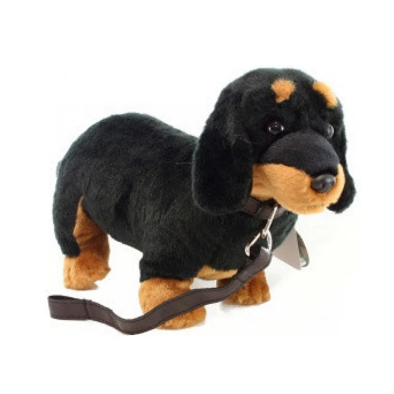 Roztomilý jezevčík zaujme svým živým vzhledem a je plyšově měkký! S límcem a vodítkem. Ideální na hraní, sbírání, jako dárek nebo k dekoraci!