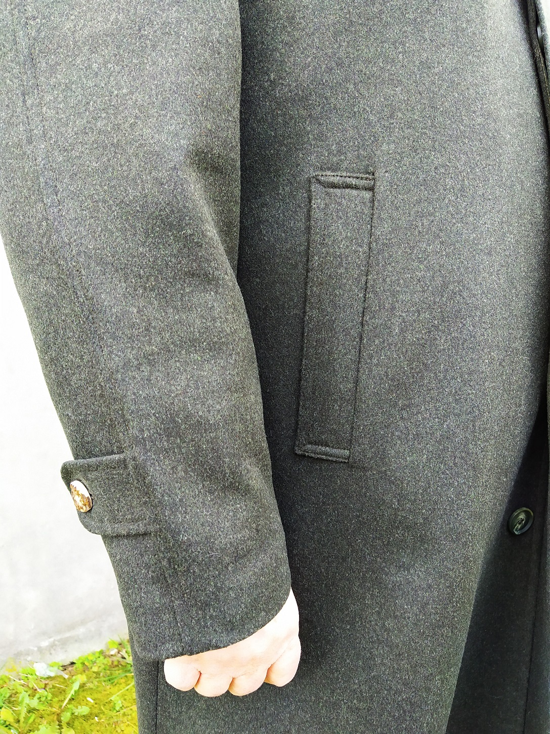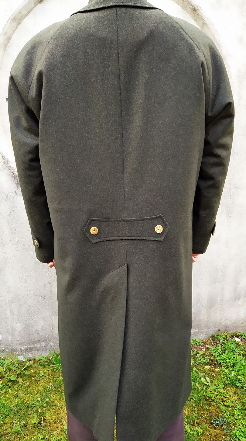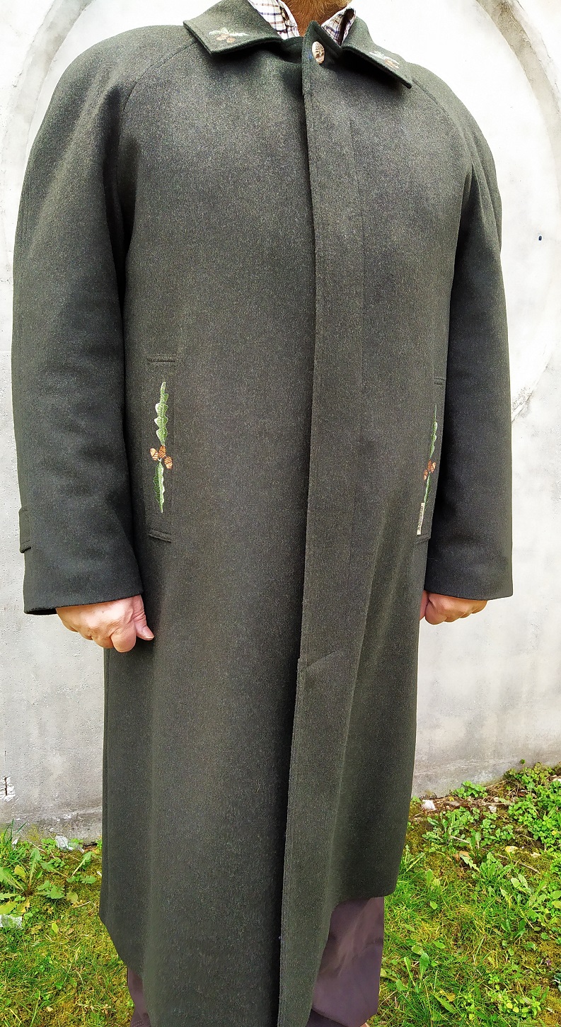 Dlhý pánsky kabát Levente II. reglánového strihu, má skryté zapínanie, chrbát s protizáhybom a golier s výšivkou, alebo parožím. Prosím informujte sa o veľkostiach na sklade Vodeodolný teflón loden. Zloženie: 100% WO (Číslo modelu: 101-0701)