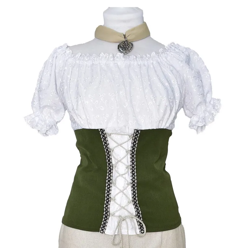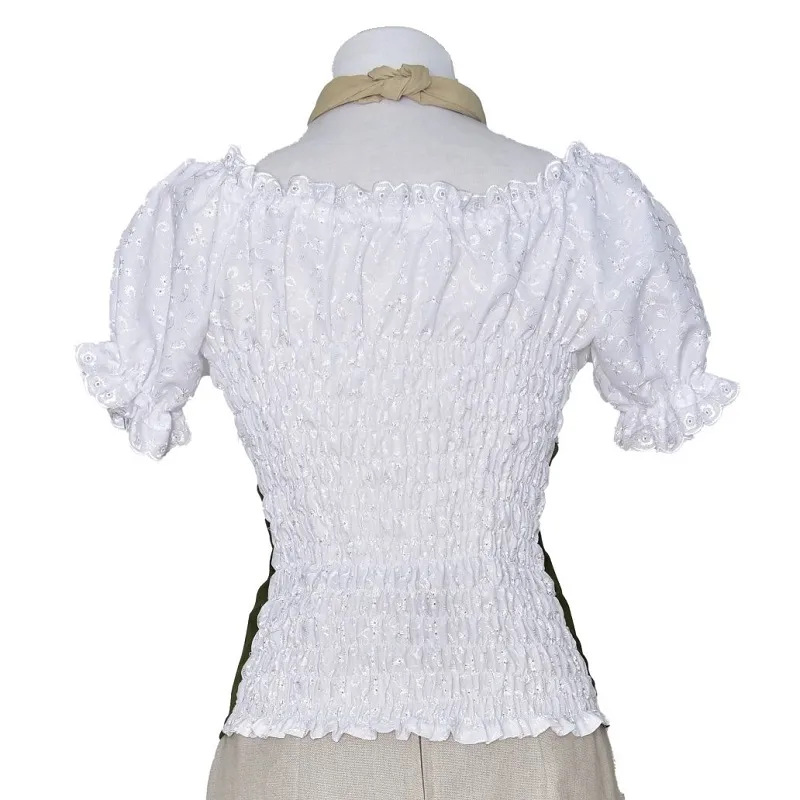 Elastická halenka zdobená výšivkou s nastavitelnou šňůrkou vpředu.