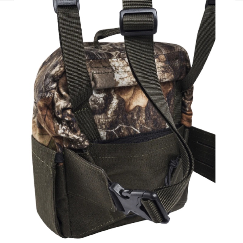 Nastavitelný postroj na dalekohled. Pojme dalekohledy 10x42 a 8x56. Plně nastavitelné polstrované ramenní popruhy. Jednoduché otevírání jednou rukou. Laserem řezané MOLLE panely na přední straně, bocích a spodní části. Bezpečnostní popruhy na dalekohled. EVA vložky absorbující nárazy. Vybaveno elastickou kapsou na laserový dálkoměr s rozhraním MOLLE.