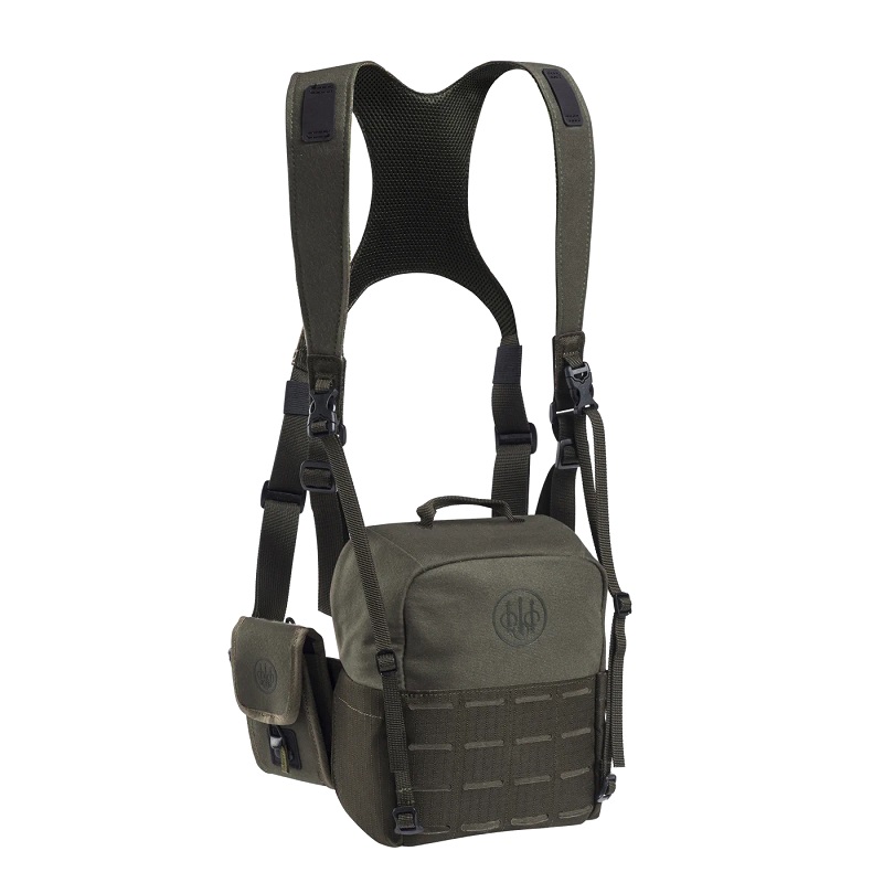 Nastavitelný postroj na dalekohled. Pojme dalekohledy 10x42 a 8x56. Plně nastavitelné polstrované ramenní popruhy. Jednoduché otevírání jednou rukou. Laserem řezané MOLLE panely na přední straně, bocích a spodní části. Bezpečnostní popruhy na dalekohled. EVA vložky absorbující nárazy. Vybaveno elastickou kapsou na laserový dálkoměr s rozhraním MOLLE.