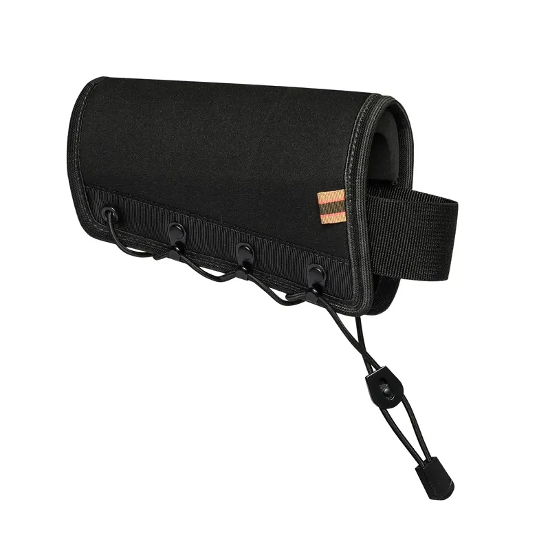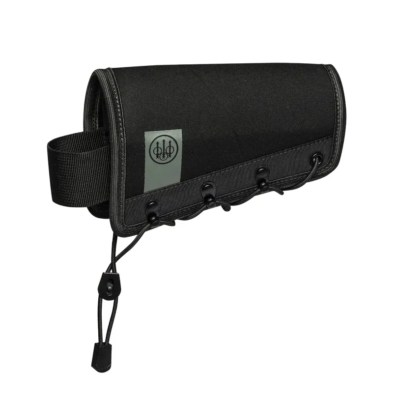Systém upevnění na pažbu s elastickou šňůrkou a kovovými háčky. Nastavení výšky pomocí 3 různých podložek. Zadní nastavení pro různé velikosti pažby.