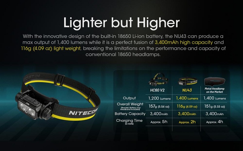 - NU43 je vybaven inteligentním systémem nabíjení. Před prvním použitím svítilnu na čelo (čelovku) nabijte.