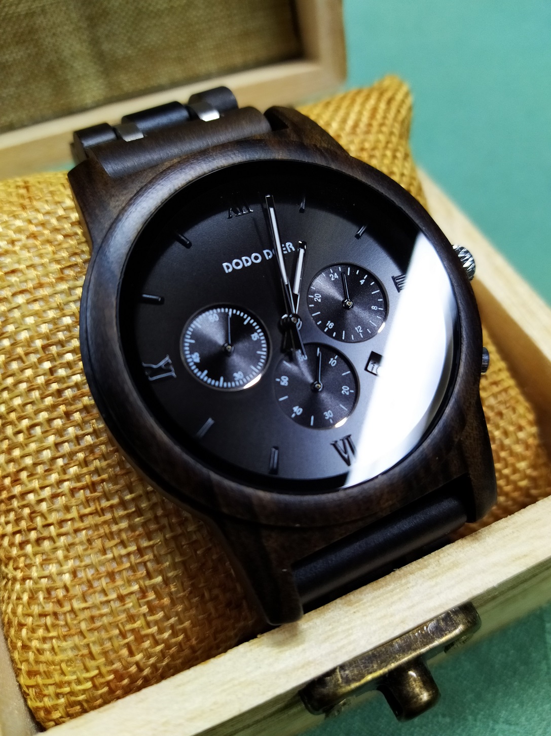 Pánske drevené hodinky tmavohnedej farby pre náročného klienta. Dodávané v bambusovej okrasnej krabičke.
