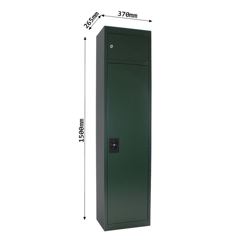 Zelená skříň na zbraně spolu se samostatnou vnitřní schránkou nabízí dostatek prostoru pro vaše dlouhé zbraně. Celkem až 5 dlouhých zbraní uskladníte uvnitř skříně a do horní schránky můžete uložit např. munici. Kvalitní ocel zajistí, že vaše zbraně budou v bezpečí před nežádoucím zacházením a zároveň hezky uskladněny. Skříň je vybavena otvory na zadní a spodní straně a spolu s dodávaným materiálem pro upevnění ji lehce zafixujete na místě. Verze Cargo je dodávána v odolnějším obalu, který zajistí podstatě nižší šanci na poškození během přepravy.