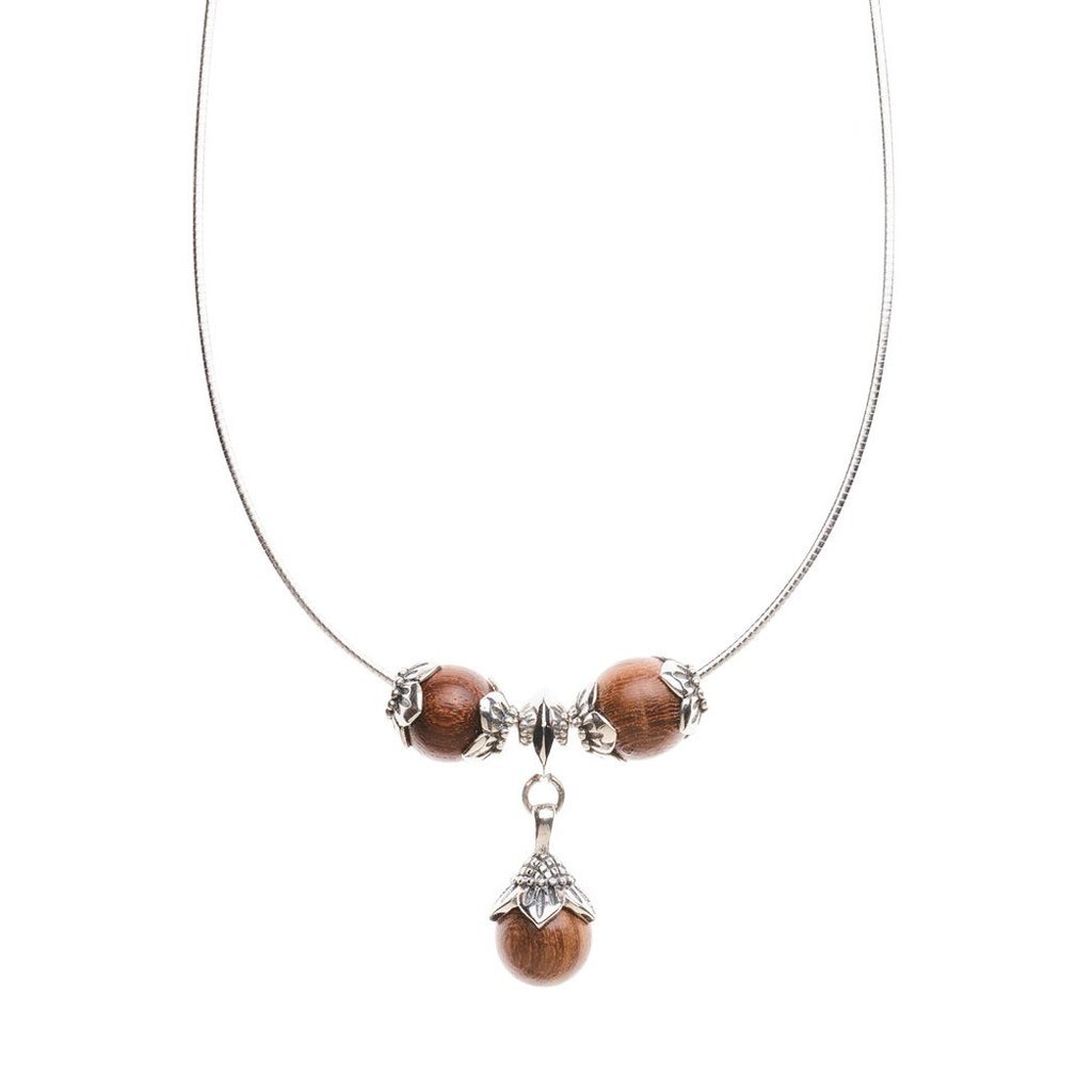 Jemný dámsky strieborný náhrdelník s príveskom a korálkami zo santalového dreva. Tento náhrdelník sa vyznačuje klasickou eleganciou, je ideálny na každodenné nosenie, pre jedinečnú ženu.