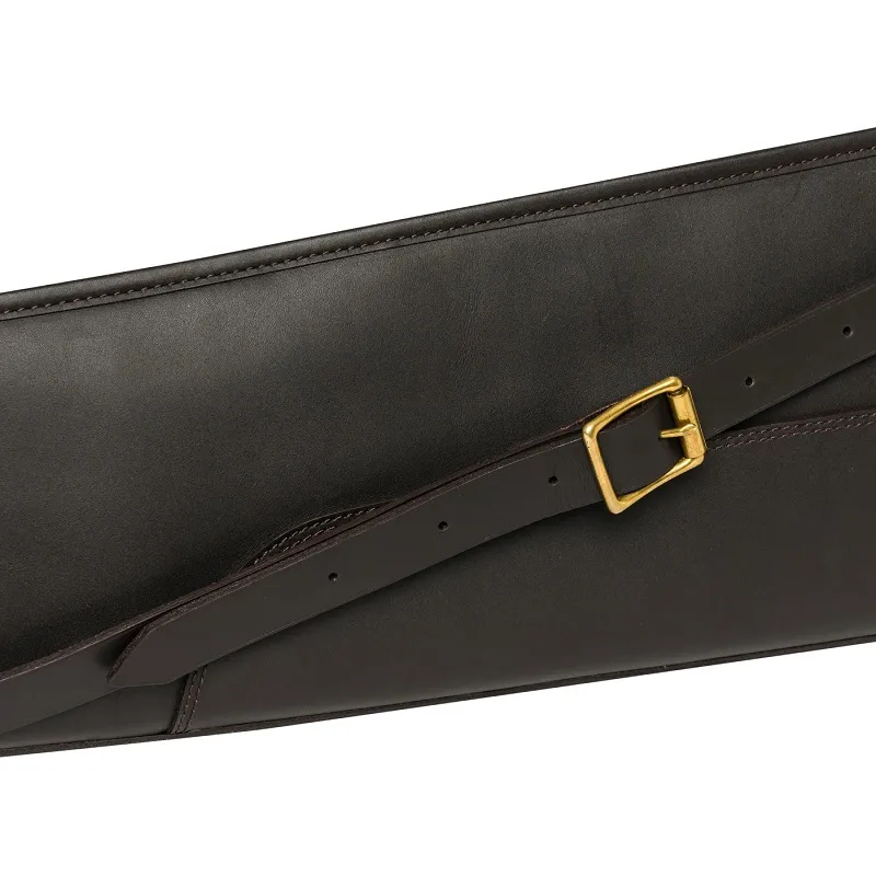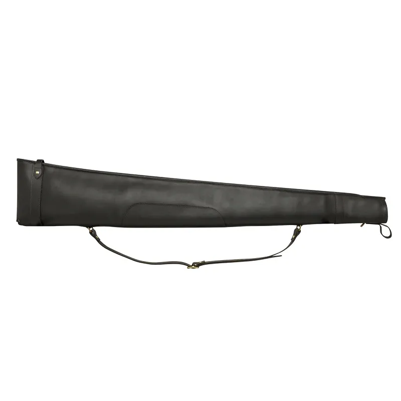 Jednopouzdro na pušky s hladkým vývrtem z pravé kůže s bočním zipem a chlopní. Vnitřní podšívka z umělé kožešiny bílé barvy. Mosazné doplňky, spony a nýty.