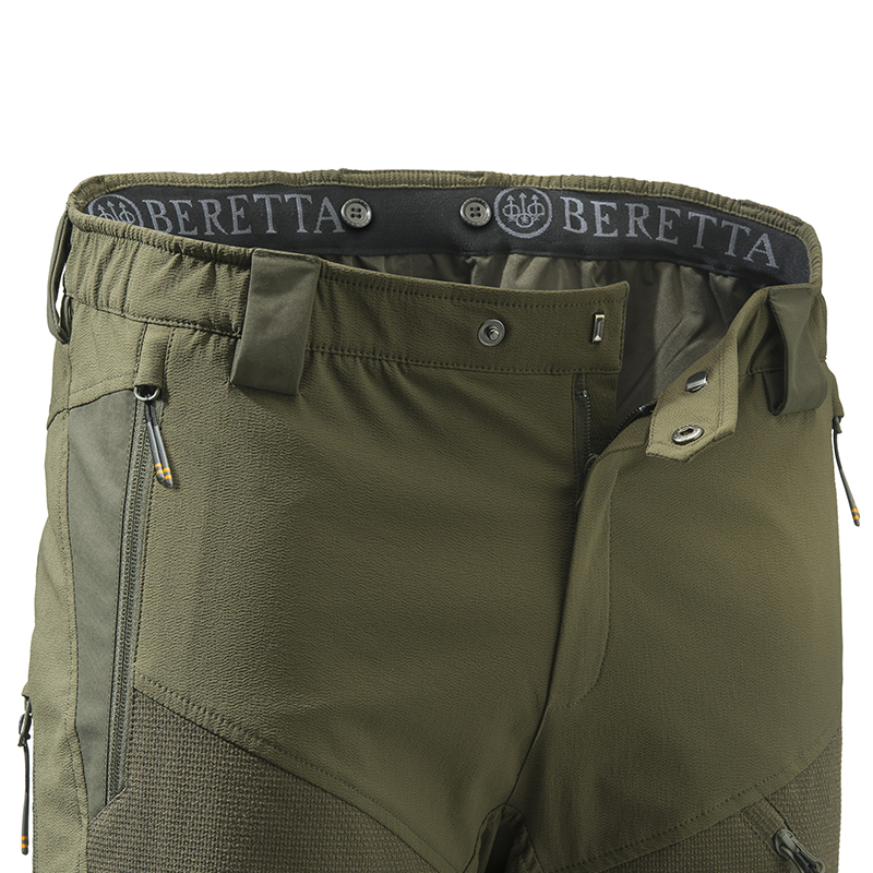 Nepremokavé a priedušné vďaka membráne BWB EVO - Beretta Waterproof Breathable EVO. Vnútorná podšívka je strečová, aby zaručila maximálnu voľnosť pohybu. Vonkajší materiál odolný voči oderu vyrobený z vysokopevnostného polyamidu pre maximálnu ochranu. Vetracie zipsy zlepšujú priedušnosť.